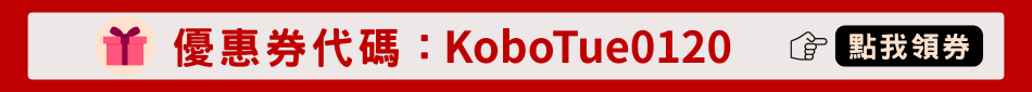 - 活動期間於樂天市場「樂天Kobo電子書」購物,單筆購物於結帳時輸入優惠券代碼,並完成訂購流程,即可立即享有75折折抵優惠,最高折抵1,000元。